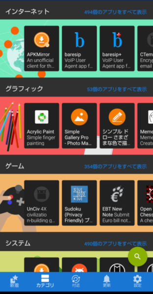 見た目は少し違いますが、F-Droidの使い方はGoogle Playと同じなので直感的に使えると思います。